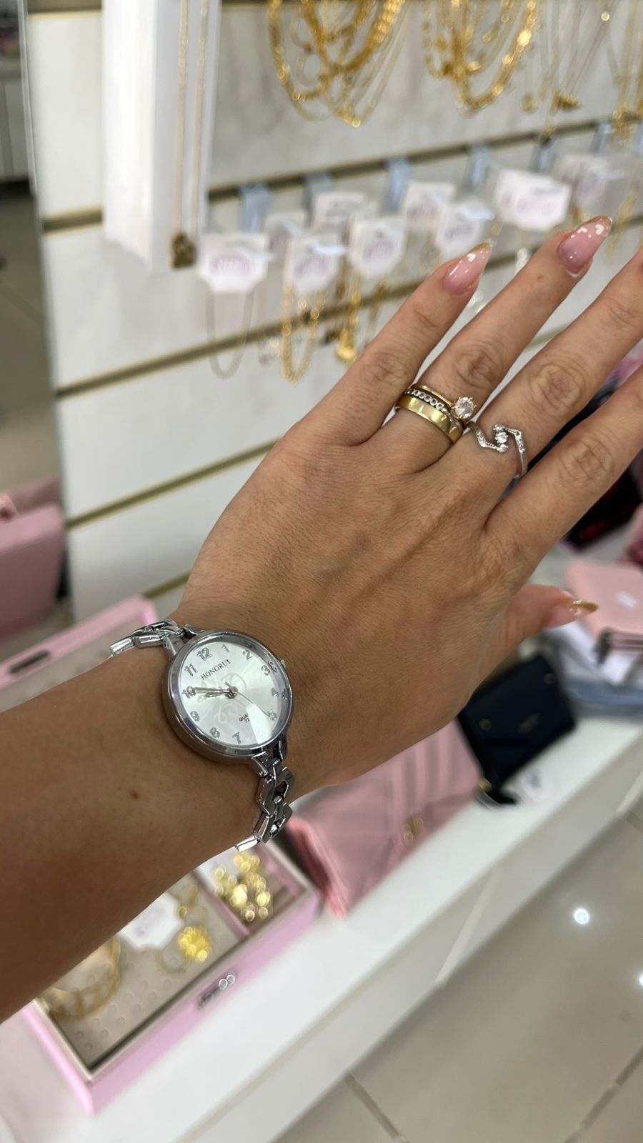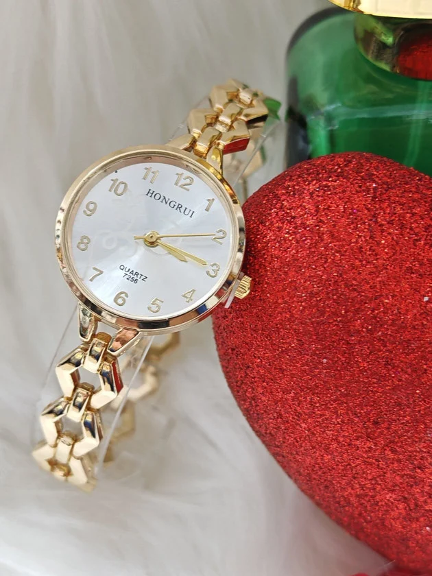 Relógio feminino elegante com design clássico e sofisticado. Possui caixa redonda dourada com acabamento brilhante, mostrador claro de fácil leitura com números arábicos e ponteiros delicados, trazendo um visual refinado para o dia a dia ou ocasiões especiais. A pulseira metálica dourada em elos garante conforto, resistência e um toque de luxo. Equipado com mecanismo quartzo, oferece precisão e confiabilidade. Produto de qualidade, com cor durável que não desbota, ideal para quem busca beleza, estilo e funcionalidade em um único acessório.